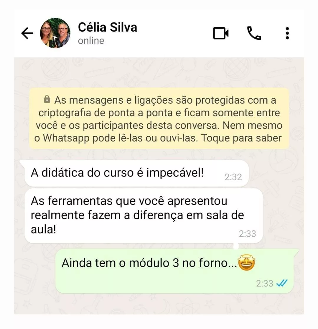 Sim, a professora Dra. Maiara Marinho, quem ministra o curso, irá oferecer suporte a todos que adquirirem o pacote através do canal no Whatsapp com a comunidade da Aicademy.